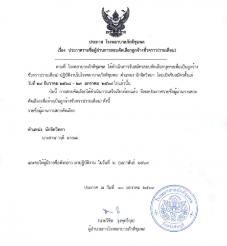 ประกาศโรงพยาบาลภักดีชุมพล