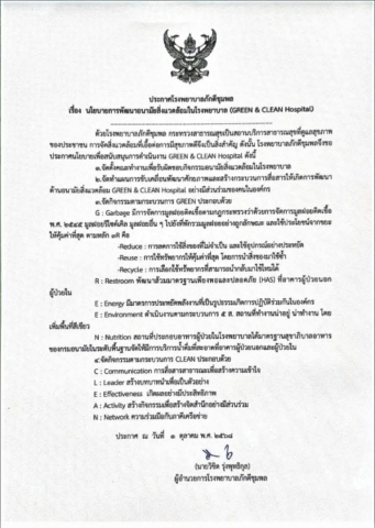 เรื่อง นโยบายการพัฒนาอนามัยสิ่งแวดล้อมในโรงพยาบาล (GREEN & CLEAN Hospital)