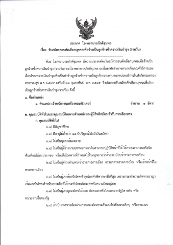 ประกาศ เรื่อง รับสมัครสอบคัดเลือกบุคคลเพื่อจ้างเป็นลูกจ้างชั่วคราว ตำแหน่ง เจ้าพนักงานเครื่องคอมพิวเตอร์